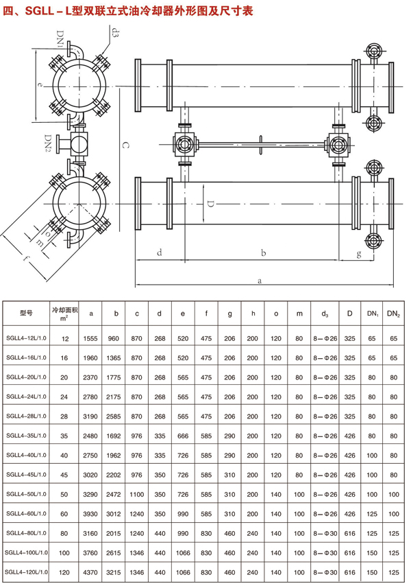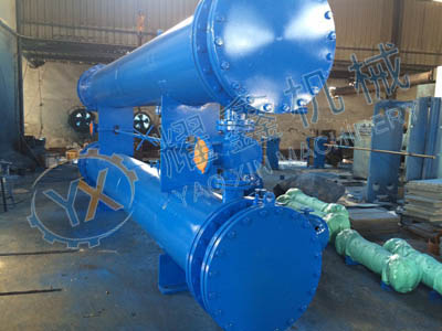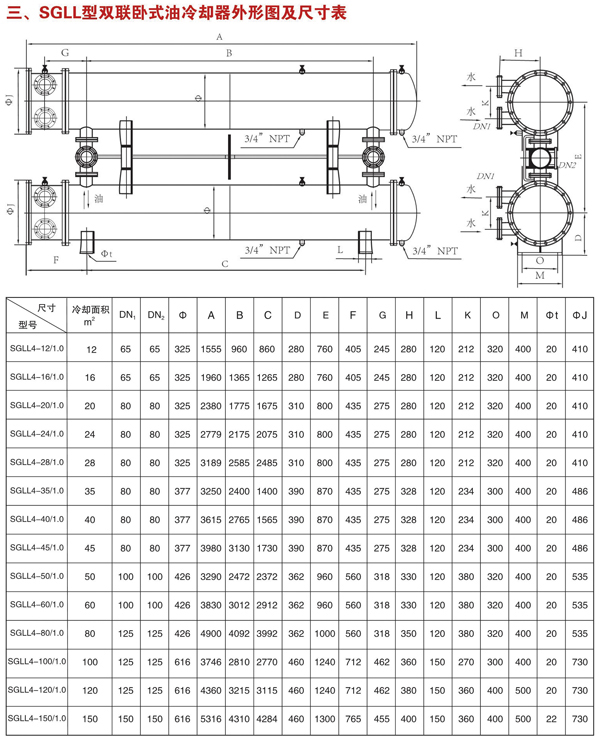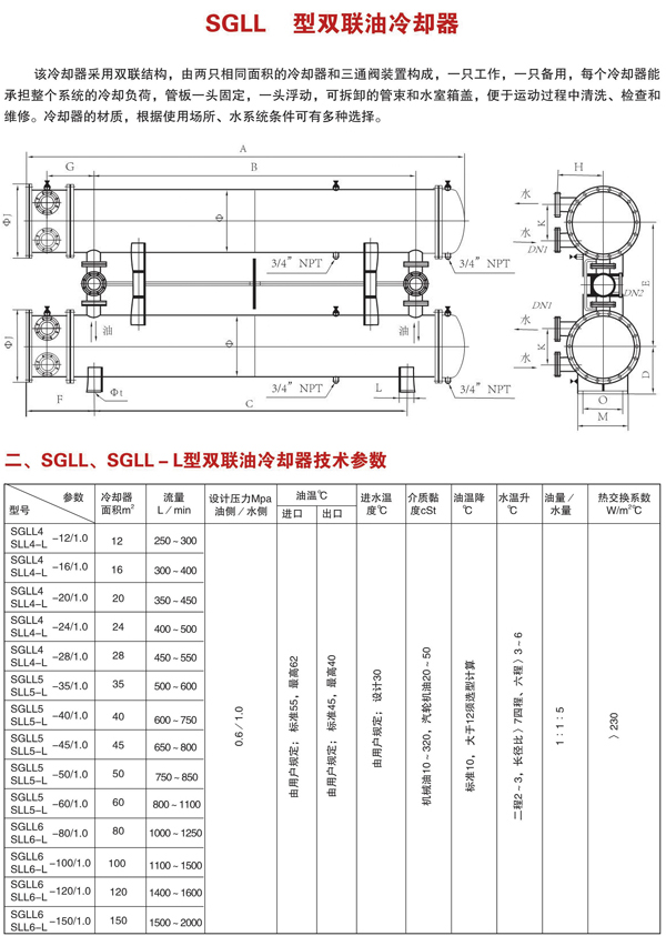 該冷卻器采用雙聯結構,由兩只相同面積的冷油器和三通閥裝置構成,一只工作,一只備用,每個冷卻器能承擔整個系統的冷卻負荷,管板一頭固定,一頭浮動、可拆卸的管束和水室箱蓋,便于運行過程中清洗、檢查和維修。冷卻器的材質,根據使用場所、水系統條件可有多種選擇。